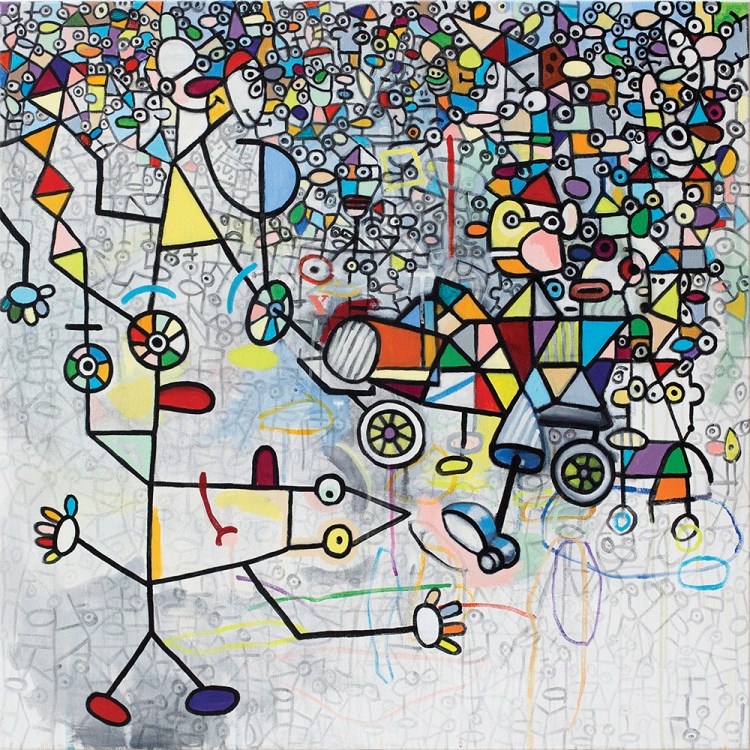 Charara uses both humor and pain in a touching and evocative way. He imbues all of his work with character and narrative, in complex settings that draw on Arabic and Middle Eastern patterns and compositions, finding the connections between history and contemporary life. He works out of his sprawling studio in Detroit’s Midtown neighborhood.