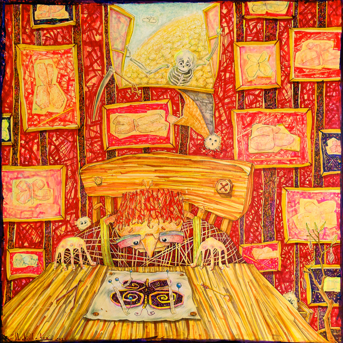 Egor Shokoladov – Lepidopterist (2021) acrylic, ink on canvas – 36″ x 36″ INQUIRE