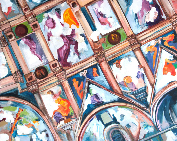 Kelly Fischer – Street Art Hoboken (2023) mixed media on canvas – 46″ x 40″ INQUIRE