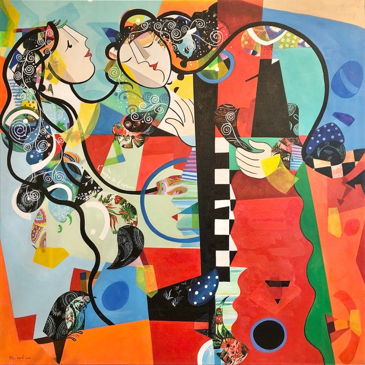 acrylic, spray paint, archival ink on canvas – 40″ x 40″