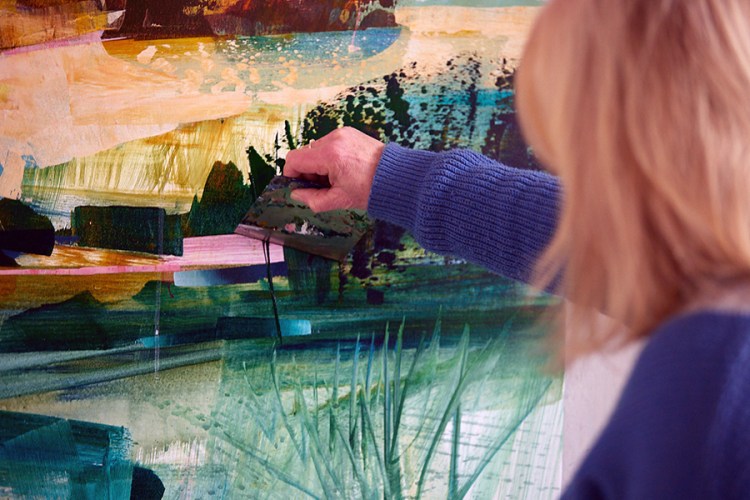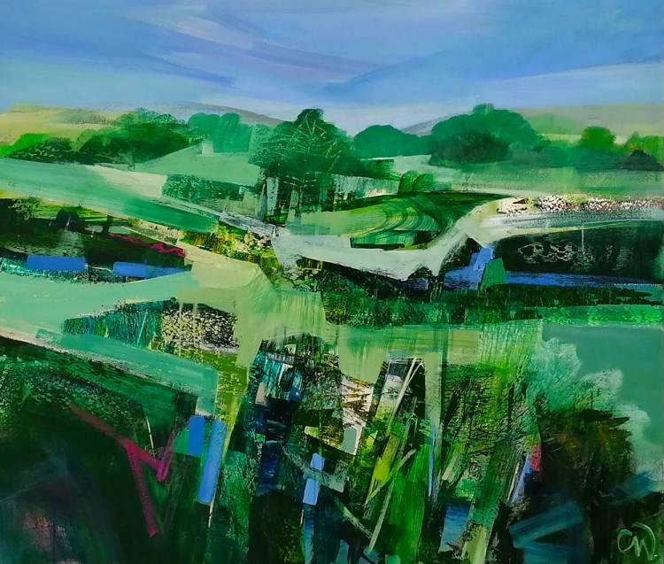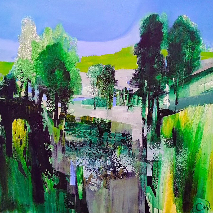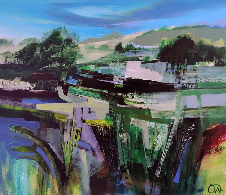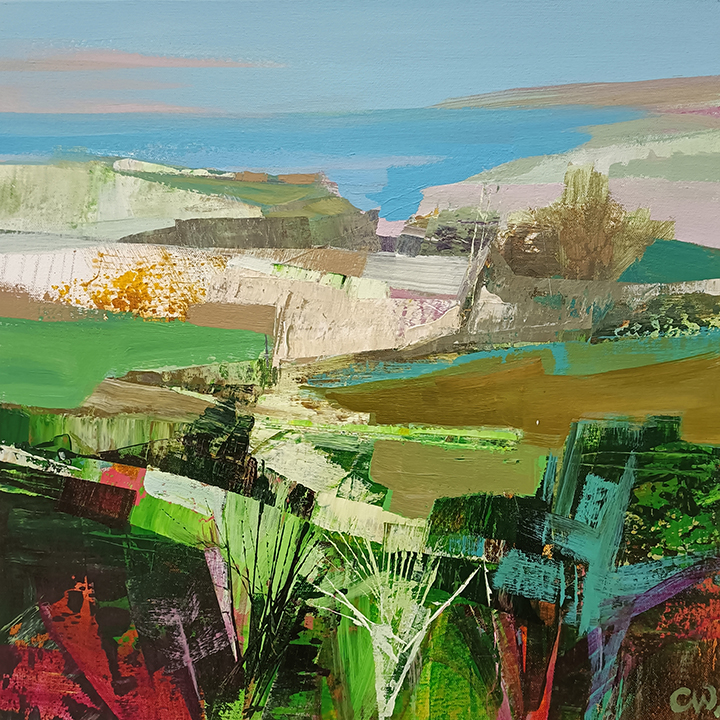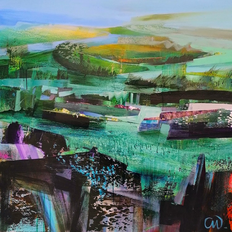 Celia Wilkinson was born in Bristol, UK, lives and works in the Isle of Wight off the South coast of England, she has a MA degree from MA from St Martins School of Art, UK and a BA from Brighton College of Art, UK. Her work is inspired by her studio surroundings in the Isle of Wight and became a visual diary as much about her personal journey and travel abroad. She avoids immediate visual representations and paint from memory, enabling her to capture the essence of a time and place. The influences of modernism is apparent in her work styles such as cubism, constructivism and European contemporaries who broke the traditions of landscape painting with their individual signature styles.
